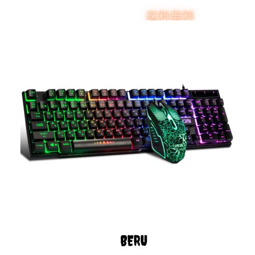 CHONCHOW ゲーミングきーボードマウスセット 日本語配列 ps4 スイッチ対応ゲーミングキーボード 108キー 七色LEDバックライト usb有線 19