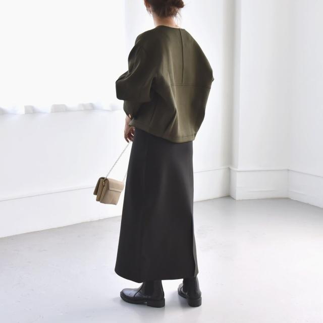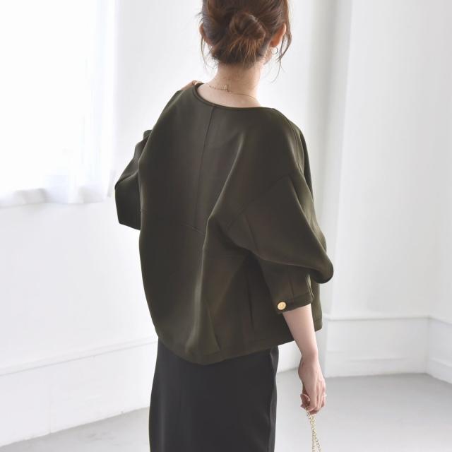 quaranciel:〈洗濯機可能〉ダブルジャージー ノーカラー コンパクト ジャケット