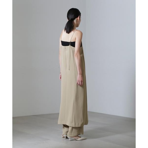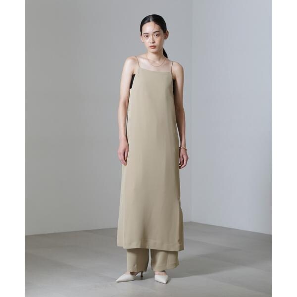 女性らしく上品な雰囲気のキャミワンピ。スクエアネックで直線的なラインが入ったボクシーでシャープな印象に◎華奢な肩紐はポイントになるゴールドの丸カン仕様で、長さ調節も可能なワンピースです。一枚でワンピースとしても、同素材のパンツと合わせてセットアップコーデとしても着用頂けます!