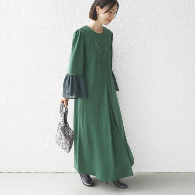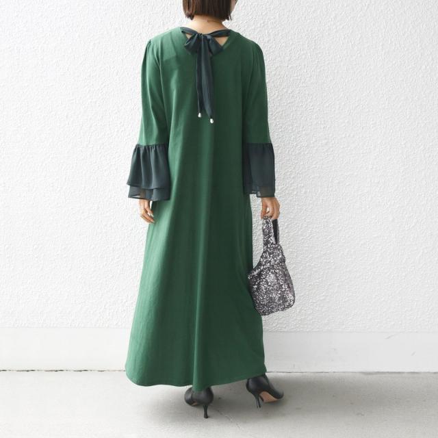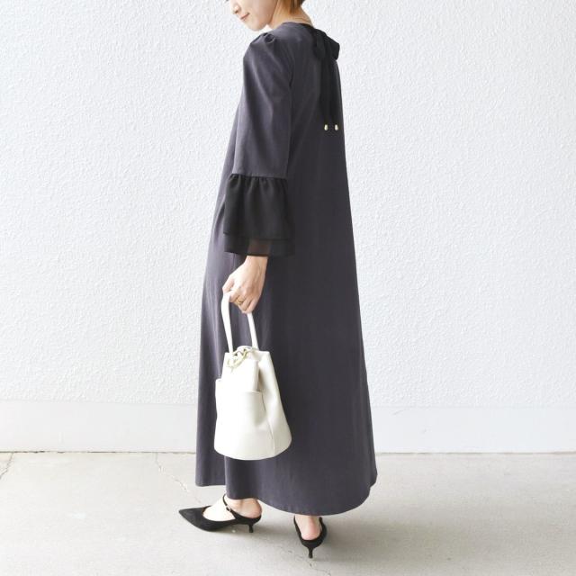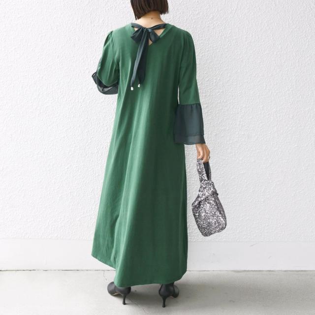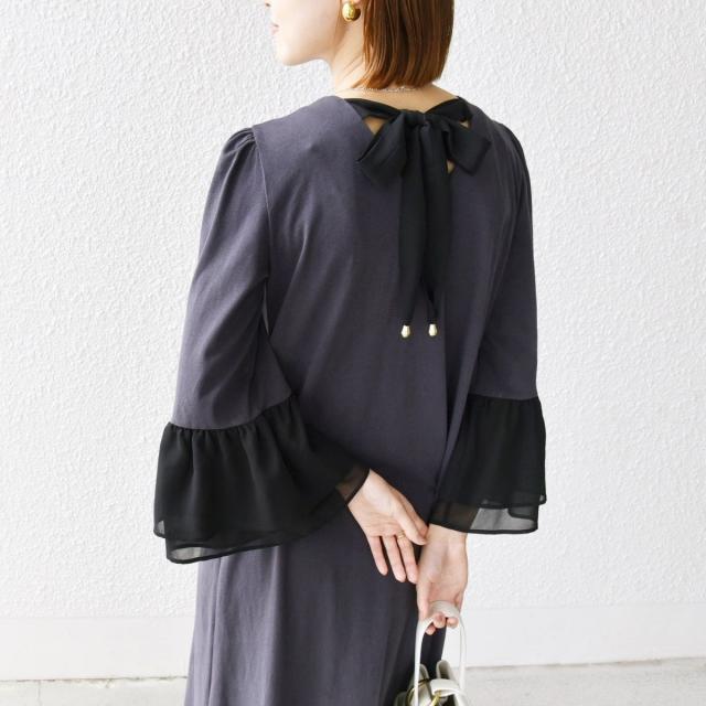 袖とバックリボンの異素MIXがメリハリを生み出すワンピース