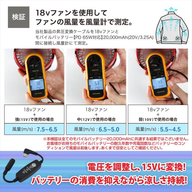 | 商品名 | 15V Type-C昇圧アダプター 風量調整3段階スイッチ付き【15V-C】 |