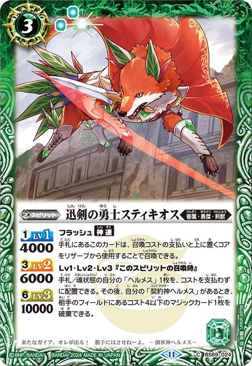 バトルスピリッツ 迅剣の勇士スティキオス(コモン) 原初の襲来(BS69) 024 | 眷属・勇傑・剣獣 スピリット 緑