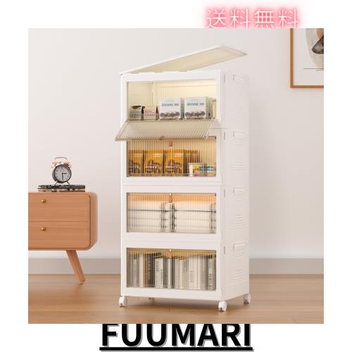 ◆商品名:ホームブリス 収納ボックス 積み重ね 折り畳み収納ボックス 前開き 蓋付き 収納ケース マグネット式扉 キャスター付き 組立簡単 透明 お