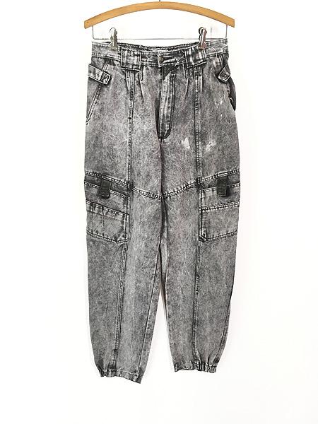 レディース 古着 90s ACADEMY ケミカル ブラック デニム カーゴ パラシュート パンツ W29 L28.5 古着