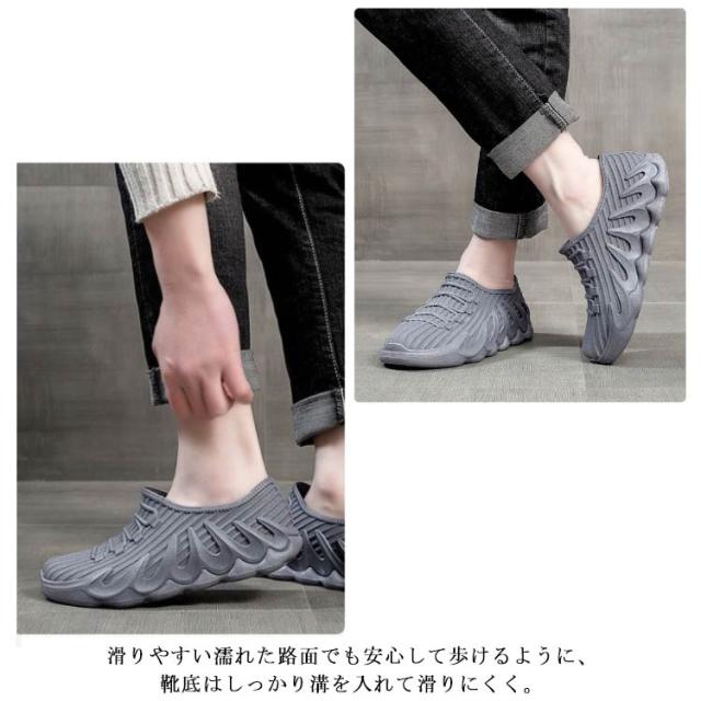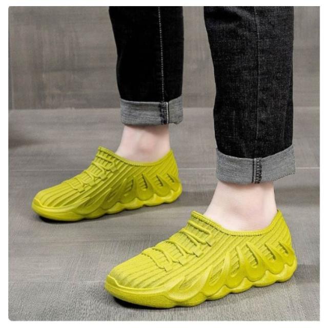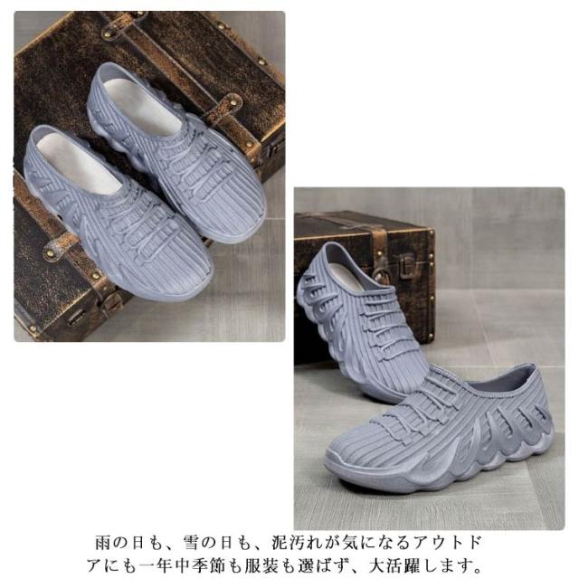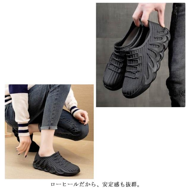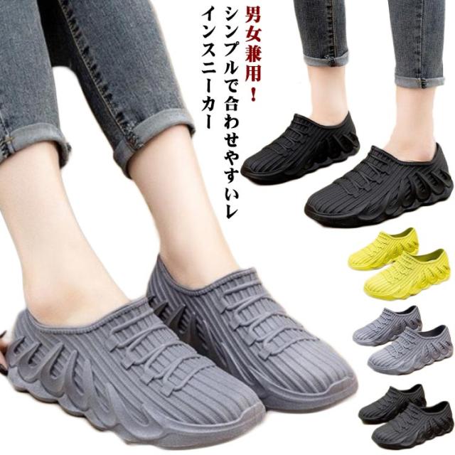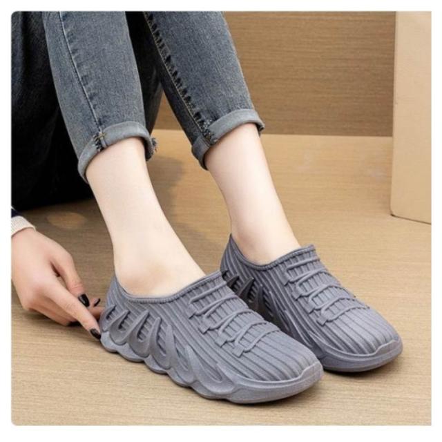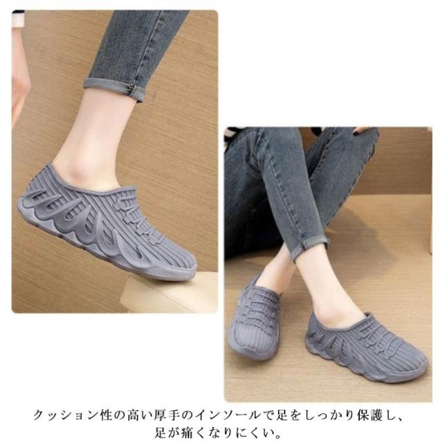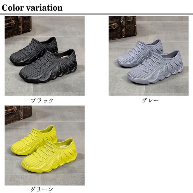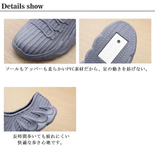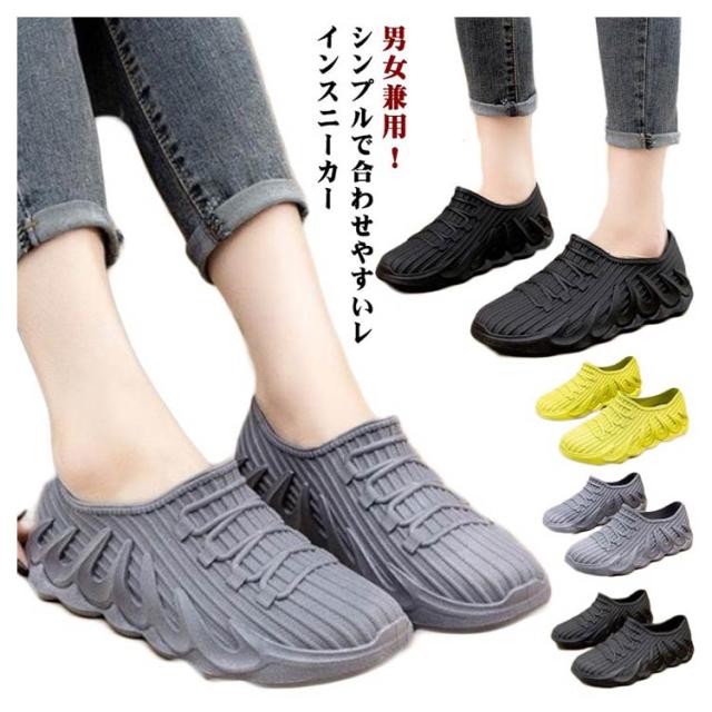 | 男女兼用!シンプルで合わせやすいレインスニーカー クッション性の高い厚手のインソールで足をしっかり保護し、足が痛くなりにくい。 ソールもアッパーも柔らかいPVC素材だから、足の動きを妨げない。 長時間歩いても疲れにくい快適な歩き心地です。 ローヒールだから、安定感も抜群。 滑りやすい濡れた路面でも安心して歩けるように、靴底はしっかり溝を入れて滑りにくく。 雨の日も、雪の日も、泥汚れが気になるアウトドアにも一年中季節も服装も選ばず、大活躍します。 | |