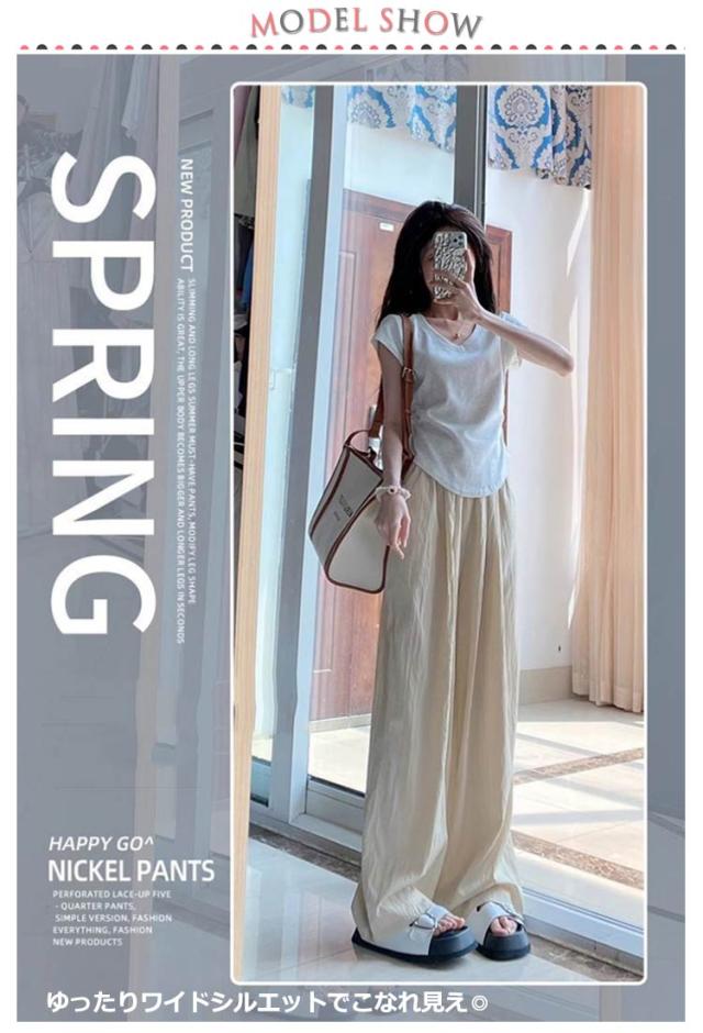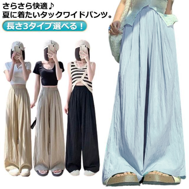 | 長さ3タイプ選べる! さらさら快適♪夏に着たいタックワイドパンツ。 ゆったりワイドシルエットでこなれ見え◎ ウエスト部分はゴム仕様で、お好みのフィット感を楽しめます。 | |