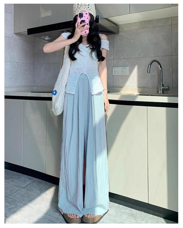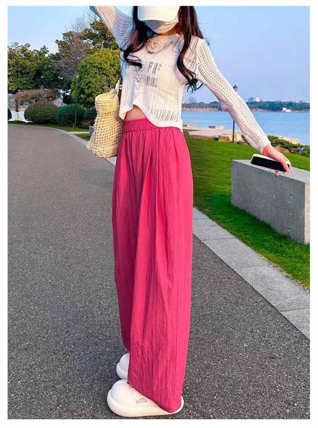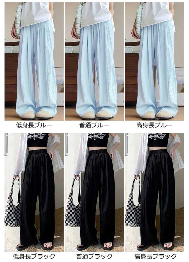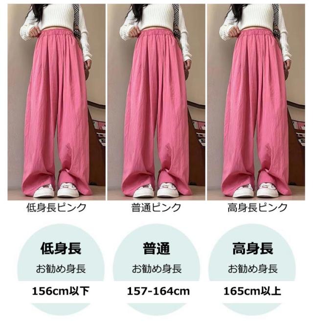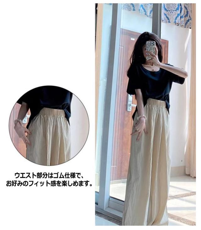 ワイドパンツ レディース きれいめ 夏用 夏 涼しい 夏 薄手 ワイドパンツ レディース シワ加工 ひんやり UVカット 大きいサイズ 接触冷感 ウチョパンツ さらさら 涼しい ワイド ボトムス ズボン 長ズボン リラックス ウエストゴム 楽ちん 美脚 イージーパンツ