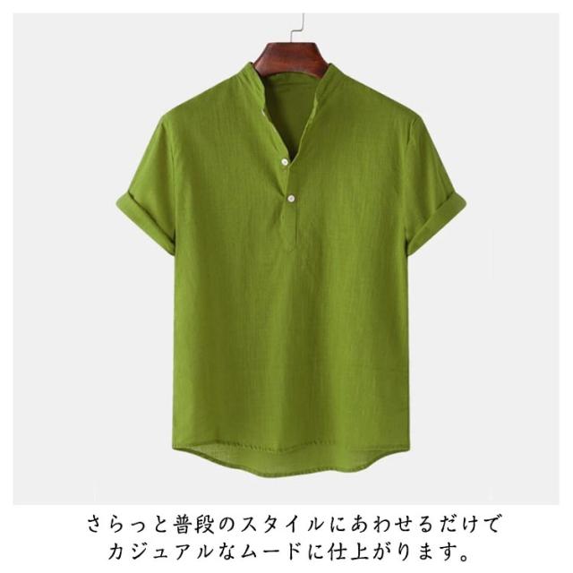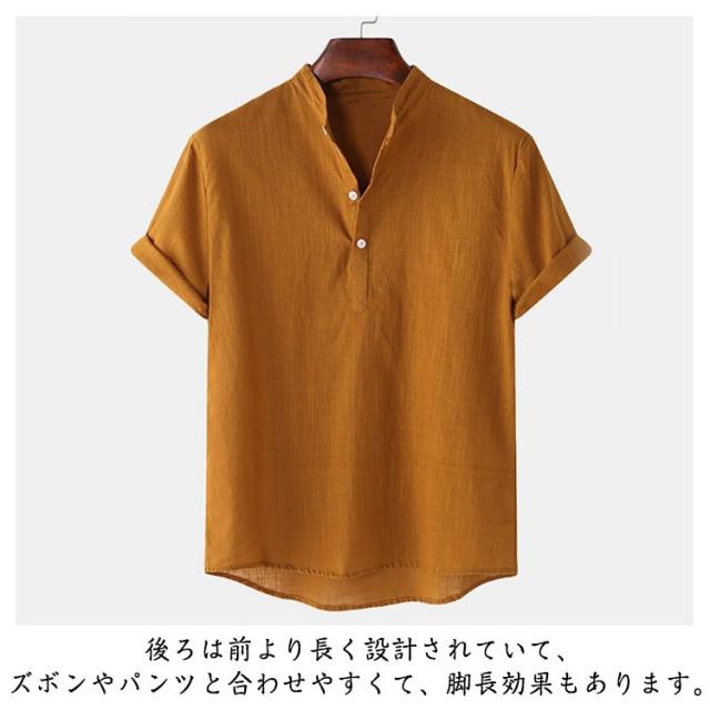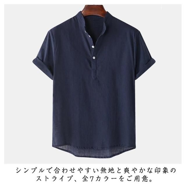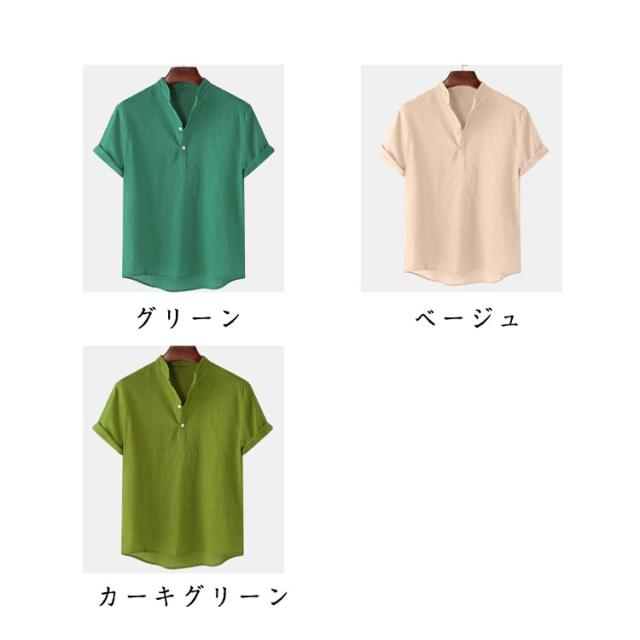 シャツ おしゃれ 半袖 パナマシャツ 半袖シャツ おしゃれ シャツ カプリシャツ プルオーバーシャツ 綿麻 無地 トップス メンズシャツ カジュアルシャツ スタンドカラー 大きいサイズ 綿麻シャツ 薄手 涼しい スキッパーシャツ ゴルフウェア 夏服 春 メンズ