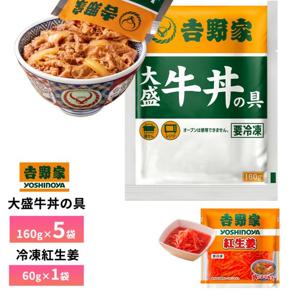 吉野家 大盛牛丼の具 160g×5食詰合せ 紅生姜1袋 送料無料 冷凍