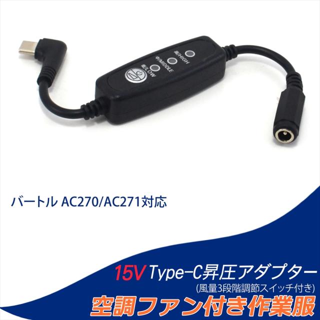 15V Type-C昇圧 アダプター L型 バートル対応 13V AC270 Type-C PD対応 モバイルバッテリー ファン付き作業服 2021年 AC271 BURTLE AIRCRAFT 変換 昇圧ケーブル ケーブル ハイパワー 電圧不足 USB-C端子 スイッチ付き 【15V-B】