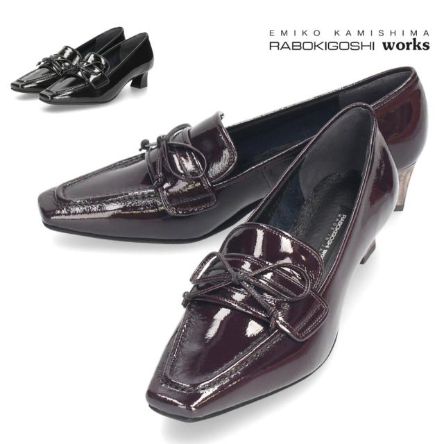レディース ローファー パンプス ラボキゴシ ワークス 靴 12784 ブラック 黒 ダークパープル 4cm ヒール レザー 本革 日本製 RABOKIGOSHI works