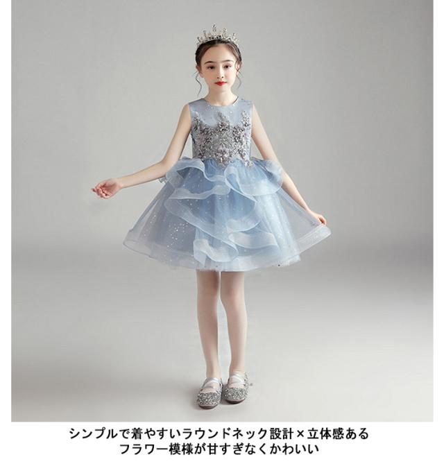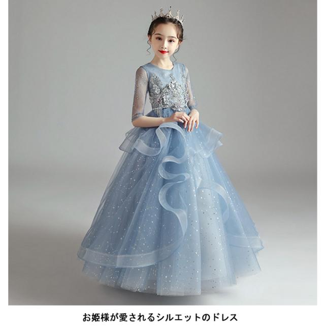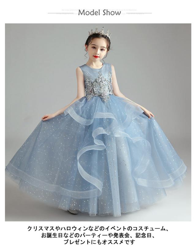 子供 ワンピース ロング ピアノドレス ロングドレス 中学生 子供用 ドレス 発表会 結婚式 お姫様 パーティードレス 100−160cm 女の子 高校生 プリンセス キラキラ チュール かわいい 卒業式