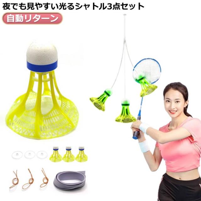 一人 光るシャトル3つセット バドミントン 練習 室内 戻ってくる 自動バックバトミントン 光る 初心者 室内バトミントン 自動リターン 光るシャトル3つセット バドミントン バックバドミントン シングルスバトミントン