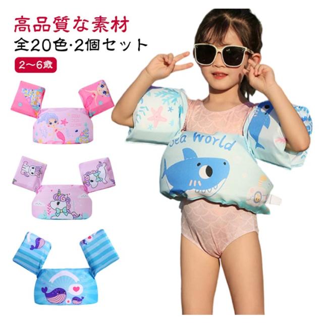 海 全20色 子供用 浮き輪 腕 水泳練習用具 軽量 キッズ 幼児 フローティングベスト 水遊び アームリング プール 2〜6歳 子ども 川遊び 海水浴 救命胴衣 便利 ライフジャケット 浮き輪 うきわ 腕輪 強い浮力 全20色 スイミング補助具 女の子 男の子 2個セット