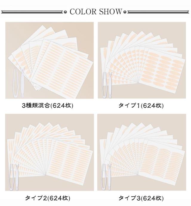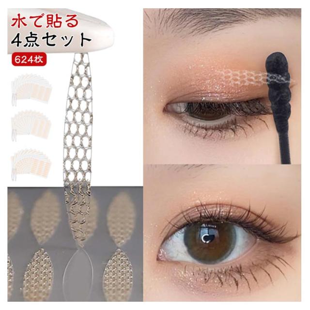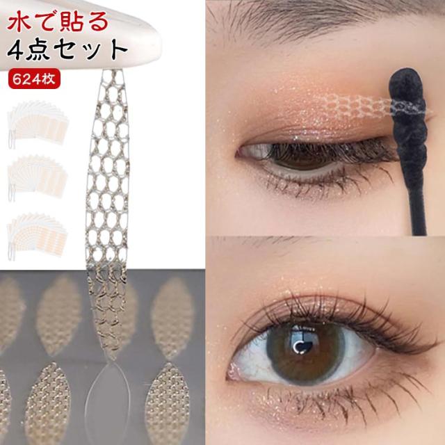メッシュ式二重テープ メッシュ 624枚 癖付け バレない アイテム 水で貼り付け ふたえテープ ふたえまぶたテープ アイプチ 二重まぶた 312回 624枚 3タイプ ピンセット コスメ メイク 強粘着 プッシャー