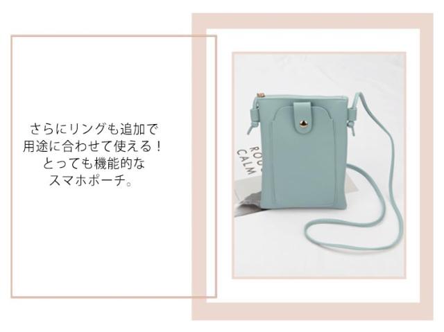 | 【スマホショルダー】【PUレザー】【全4色】 スマホ、ミニ財布、鍵等最低限の荷物での外出にピッタリなスマホポーチ。 シンプルながらも機能的、いつでも持ち運びたくなるアイテムです。 さらにリングも追加で用途に合わせて使える!とっても機能的なスマホポーチ。 これひとつでお出かけ可能。ちょっとしたお出かけや様々なシーンで大活躍。 バッグの開口部にはスナップボタンを採用しています。 物の飛び出しを防ぎ、取り出し時の開け閉めも簡単なシンプル設計です。 ファスナーポケット付きで小銭や鍵、ICカードなどをスマホと一緒に持ち運び! 厳選した上質な型押しPUレザーを採用しています。 少しの水濡れ、汚れにも強く、絞ったタオル等で拭いてケア出来ます。 | |
