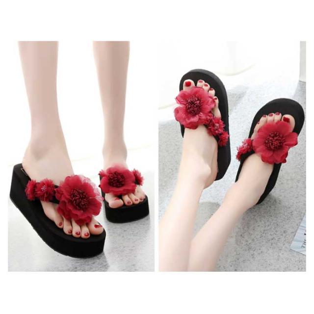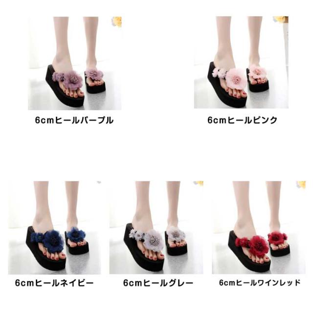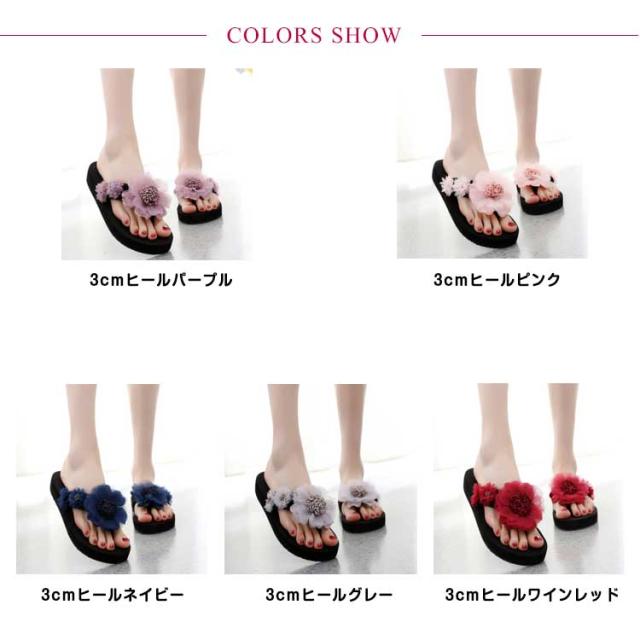 | 3cm/6cm厚底ヒール 足元を彩るサマーデザイン華やかな花柄がビーチ映え間違いなし水着はもちろん洋服や浴衣と合わせても◎ | |