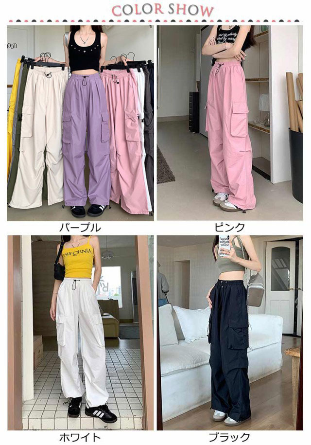 ゆったり カラーパンツ 夏 レディース ワークパンツ ダンスパンツ ウエストゴム ワークパンツ 涼しい 春 夏 ロング 春 ワイドパンツ 夏 おしゃれ 無地 カーゴパンツ ボトムス 2way 裾ドロスト ストリート 大きいサイズ ミリタリー