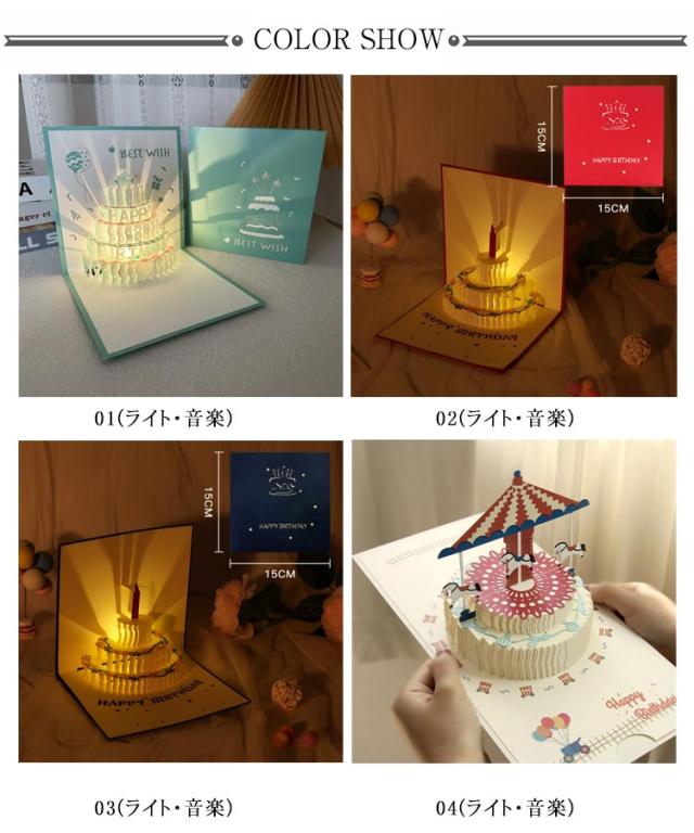 飛び出す 全9種 お誕生日 2枚セット!光る 誕生日カード 3D 封筒付き 立体 ケーキ LED ポップアップカード バースデーカード ライト付き グリーティングカード メロディカード 2枚セット!光る メッセージカード 切り絵 HAPPYBIRTHDAY 祝い
