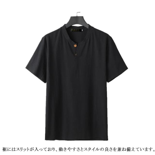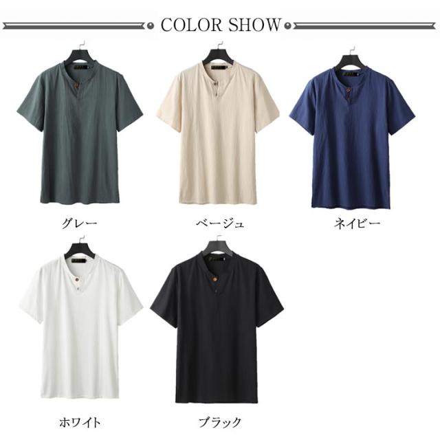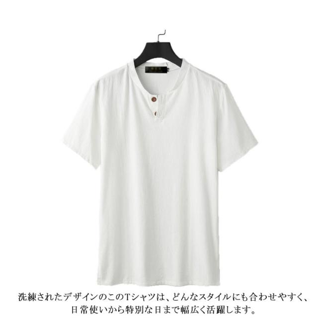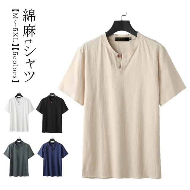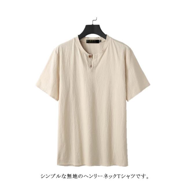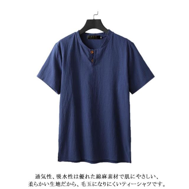 綿麻 コットン シンプル 夏 ヘンリーネックtシャツ tシャツ 半袖 メンズ 無地 大きいサイズ 父の日 2つボタン 半袖Tシャツ ティーシャツ カジュアル 半袖シャツ メンズファッション 綿麻 夏物 プレゼント ルームウェア