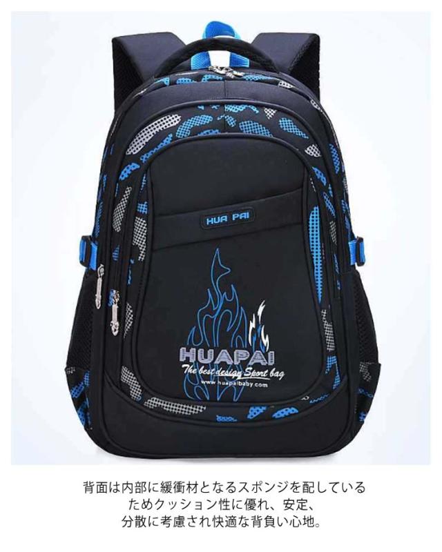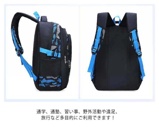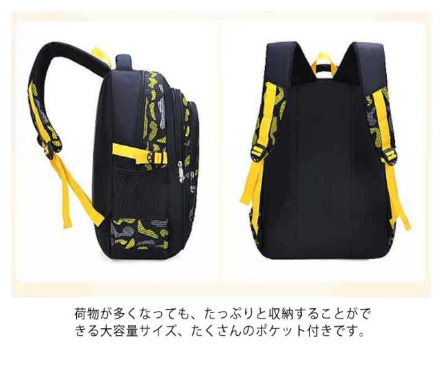 | 【キッズリュック】【低学年/高学年】【大容量・撥水】 お子様に負担をかけない、軽量で大容量のリュックサック。 通学、通塾、習い事、野外活動や遠足、旅行など多目的にご利用できます! 荷物が多くなっても、たっぷりと収納することができる大容量サイズ、たくさんのポケット付きです。 A4サイズ対応なので厚い教科書や本もすっぽり入ります。PCやタブレットも収納できます。 高密度防撥水素材使用で撥水性が高く、耐久性、耐摩耗性、雨が降ってもリュックの中身は濡れません。 背面は内部に緩衝材となるスポンジを配しているためクッション性に優れ、安定、分散に考慮され快適な背負い心地。 ショルダーベルトは通気性と体圧分散性に優れた厚手のウレタン素材使用。 幅広のショルダーストラップは、お子様の肩にかかる負担を軽減します。 2サイズ展開なのでお子様の年齢や身長にピッタリのサイズをご利用いただけます。 | |