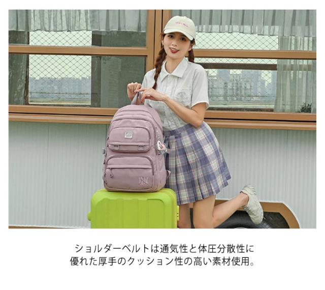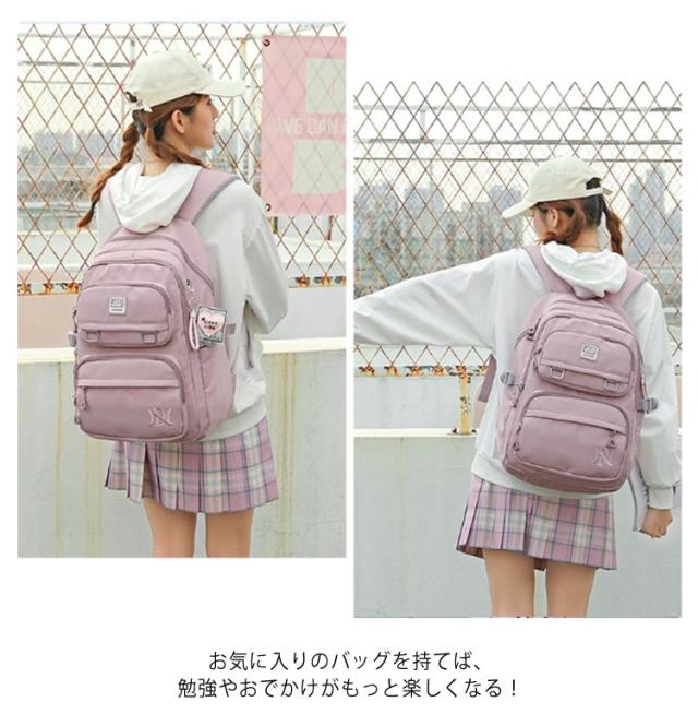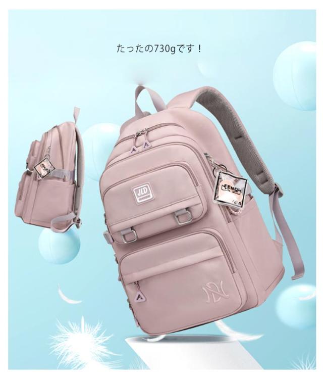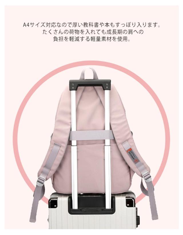 | 【小学生〜中学生】【大容量・軽量】【5colors】 通学や塾、習い事、遠足、クラブ活動、修学旅行などの活動もオススメのリュックサック。 爽やかなパステルカラー&ブラックでキュート&スタイリッシュ。 お気に入りのバッグを持てば、勉強やおでかけがもっと楽しくなる! 濡れても安心な防撥水素材の高密度ナイロンを使用しているので、より長くお使いいただけます。 A4サイズ対応なので厚い教科書や本もすっぽり入ります。 たくさんの荷物を入れても成長期の肩への負担を軽減する軽量素材を使用。 たったの730gです! 内側にも外側にも散らばりやすい小物が収納しやすいポケット付き。 キュートな見た目だけでなく機能面も充実。 内側にも外側にも散らばりやすい小物が収納しやすいポケット付き。 ショルダーベルトは通気性と体圧分散性に優れた厚手のクッション性の高い素材使用。 | |