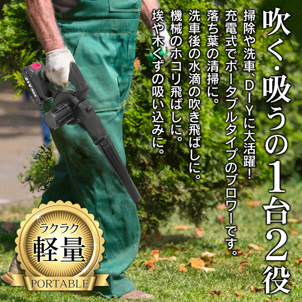 送料無料 ! ブロワー 充電式 バキューム 電動 コードレス 送風 集塵 掃除機 落ち葉 洗車 水滴飛ばし 埃飛ばし 1台2役 吹く 吸う【 ブロア ブロアー 清掃 掃除グッズ 庭 枯れ葉 園芸 ガーデニング 車内 ほこり 集じん 洗車 】 送料込 80S◇ ブロワー&バキューム