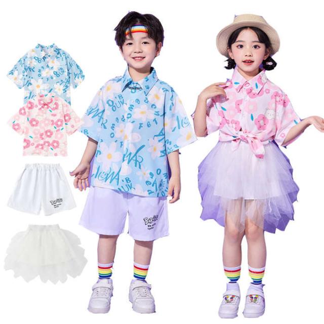 商品名:ダンス衣装 チアガール ダンスウェア 女の子 男の子 トップス シャツ パンツ ズボン スカート 花柄 ダンス服 ダンス着 ヒップホップ hiphop jazz K-POP セットアップ かっこういい 子供服 ステージ衣装 発表会 イベント衣装 ステージ衣装 モダンダンス 踊り ダンス大会 カジュアル 文化祭 学園祭 演出服 おしゃれ