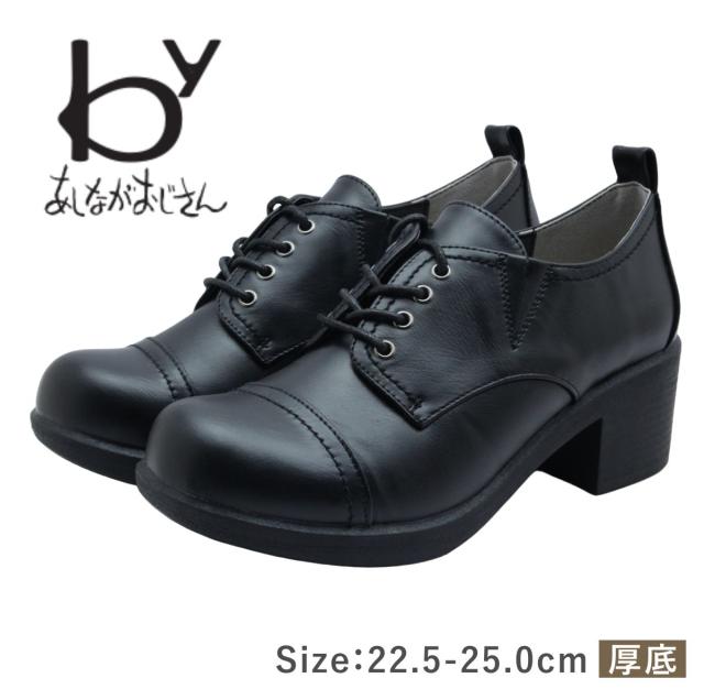 by バイ あしながおじさん レディース シューズ 8980437 レースアップ サイドゴア 厚底 ひも 履きやすい 歩きやすい 靴 黒 ブラック