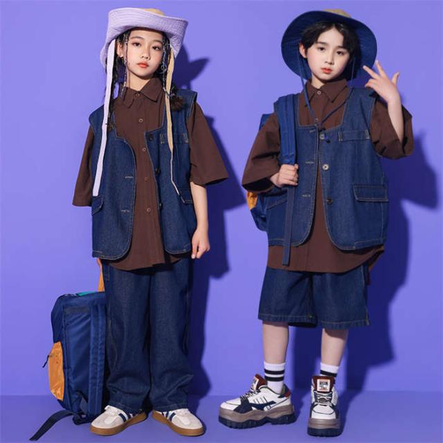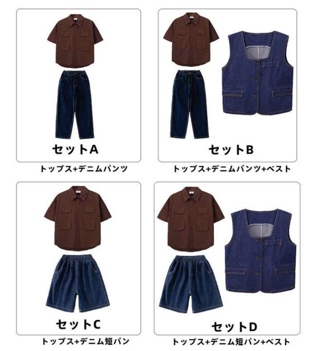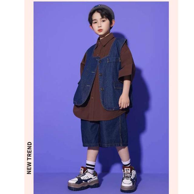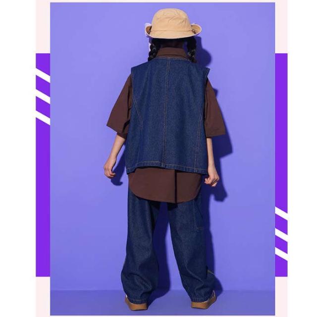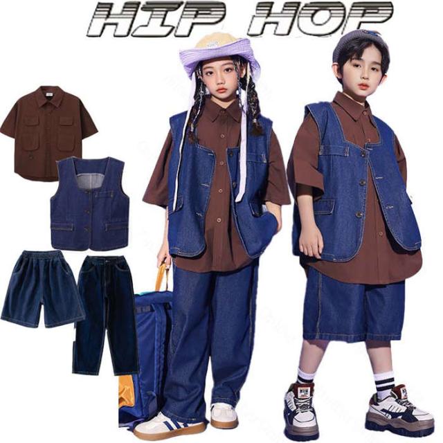 ダンスウェア デニムセット 女の子 男の子 ダンス衣装 デニムベスト カジュアルシャツ デニムパンツ ロングパンツ デニム短パン