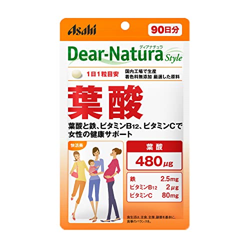 ディアナチュラスタイル 葉酸 90粒90日 アサヒ サプリ 1日1粒 国内工場 パウチ 妊娠前 妊娠中 授乳期 鉄