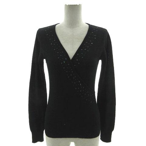 【中古】アー・ヴェ・ヴェ ミッシェルクラン a.v.v ニット セーター ビーズ スパンコール カシュクール 長袖 黒 38