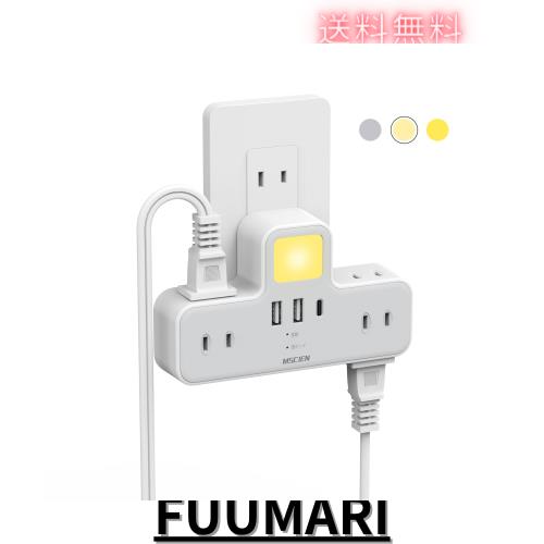 Mscien コンセント 分岐 LEDナイトライト usb コンセント 電源タップ usb付き 1個usb-c 2個usb-a 6個AC口 USB-C コンセントタップ 雷ガー