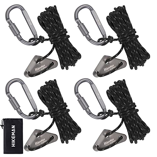 テントロープ パラコード カラビナ付き 調節可能 タープロープ ガイライン 張り綱 反射材入り 太さ 4mm 長さ4M 自在金具 4個セット キャ