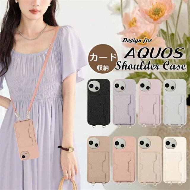 スマホショルダー AQUOS R10 wish5 WISH4 WISH3 アール8 R9 プロ ケース ショルダー 薄型 持ちやすい アクオス センス8 センス7 プラス ケース 背面 カード入れ 韓国 斜め 肩掛け カワイイ 可愛い AQUOS sense9 sense8 携帯カバー カード収納 ショルダー ストラップ付き