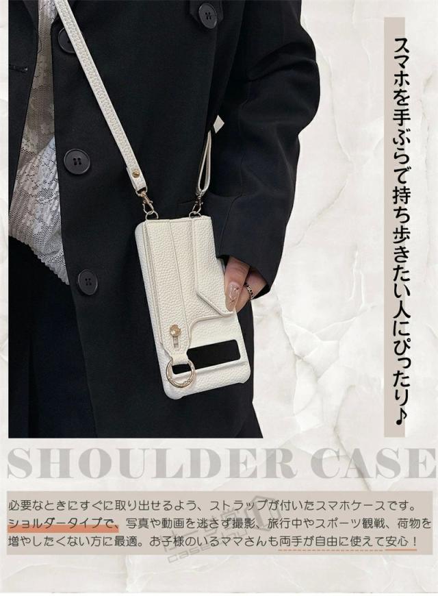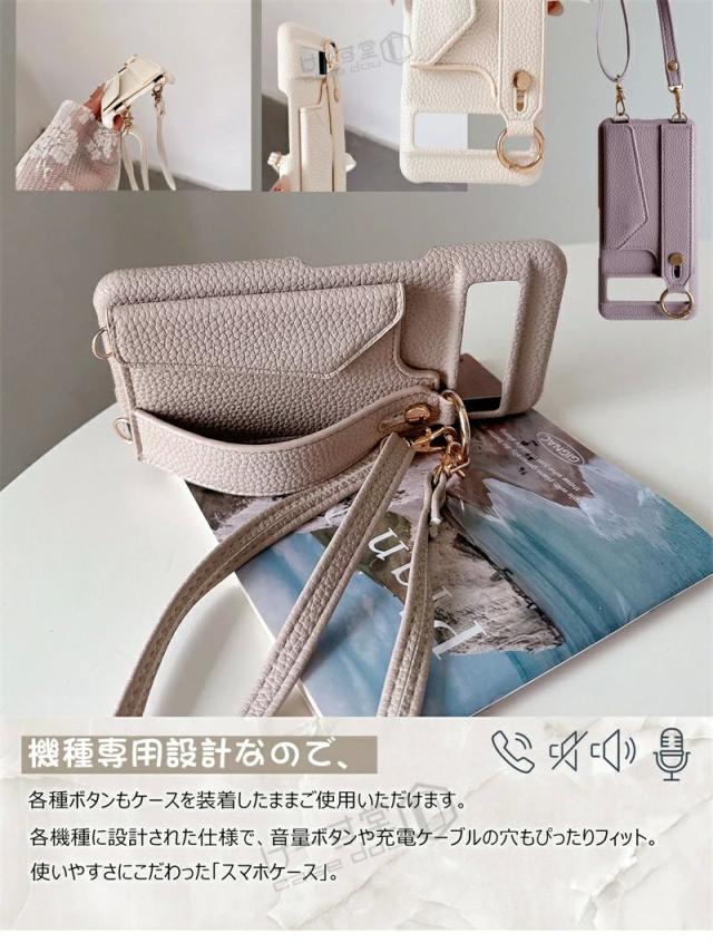 トレンド感あるストラップ・カードポケット付き背面ケースです。