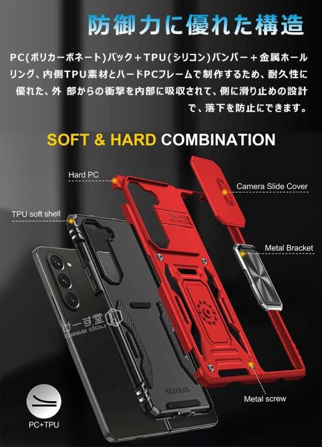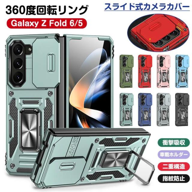 スライド式カメラカバー Galaxy Z Fold7 Fold6ケース 360度回転 リング付き 車載ホルダー対応 耐衝撃 Galaxy Z Fold5 5gケース 滑り防止 Galaxy Z Fold5ケース スタンド機能 ZFold6 SC-55E SCG28 カバー カメラ レンズ保護 スライド式カメラプロテクター付