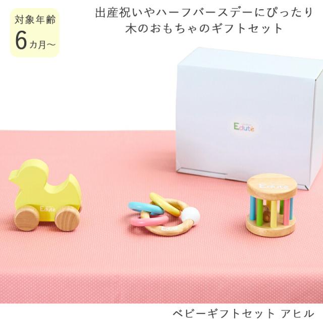 ベビーギフトセット アヒル Edute' エデュテ 出産祝い ハーフバースデー 木のおもちゃ 赤ちゃん ベビー プレゼント ギフト ラトル ベビーギフトセット お祝い 6ヶ月 0才 ラトル ガラガラ 男の子 女の子