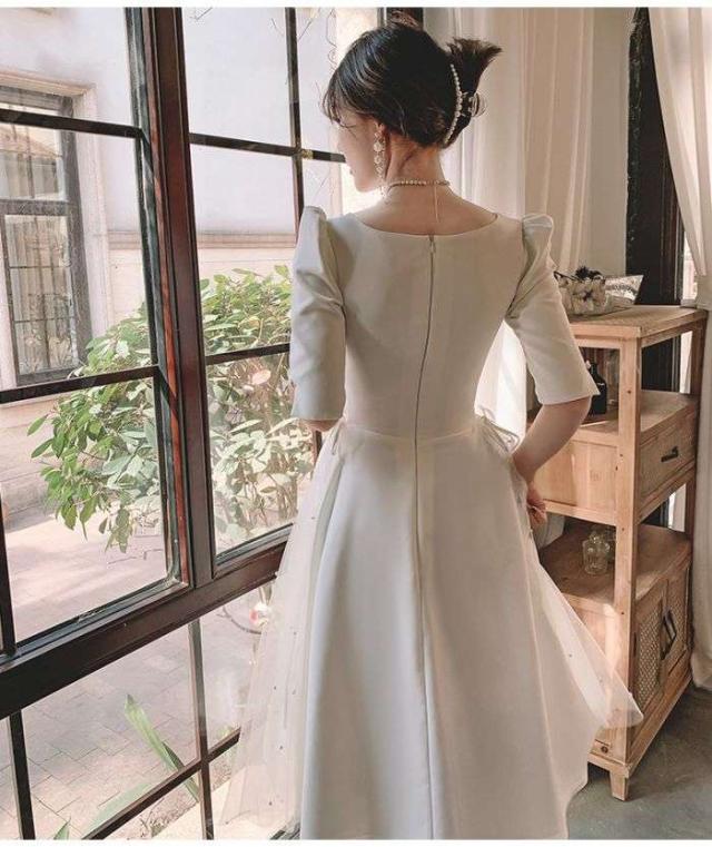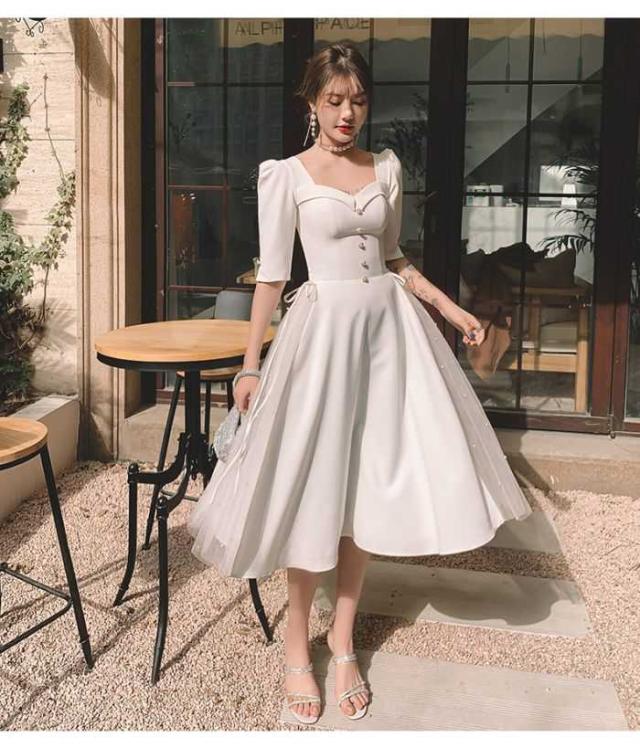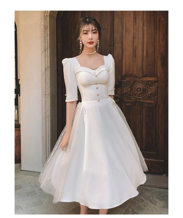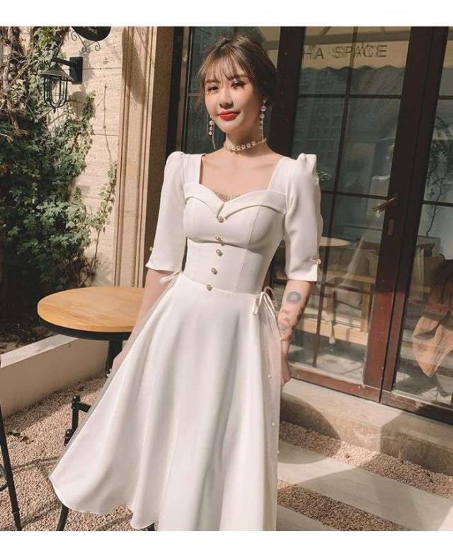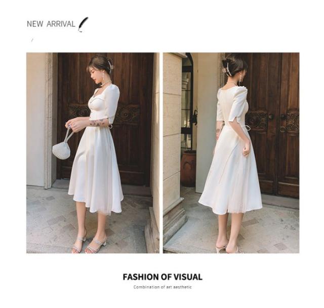 白いドレス女性2024夏日常用宴会パーティー日常ワンピースセレブフランス式