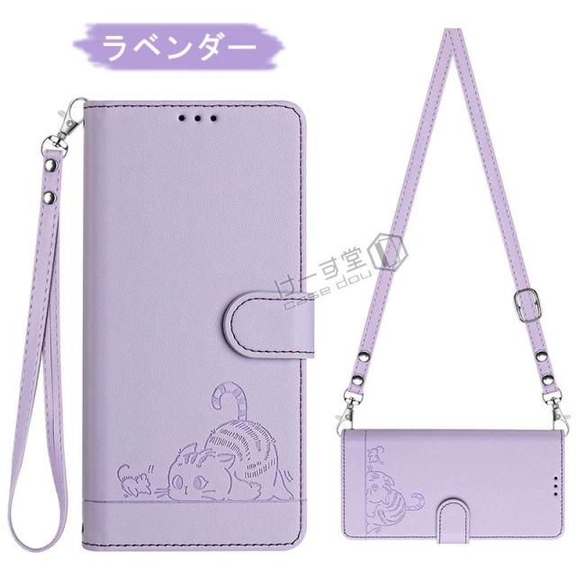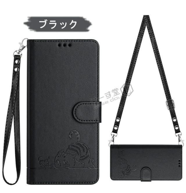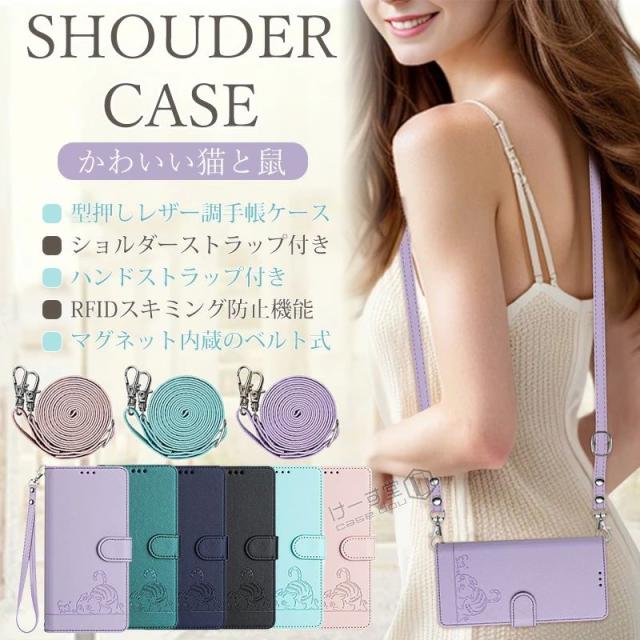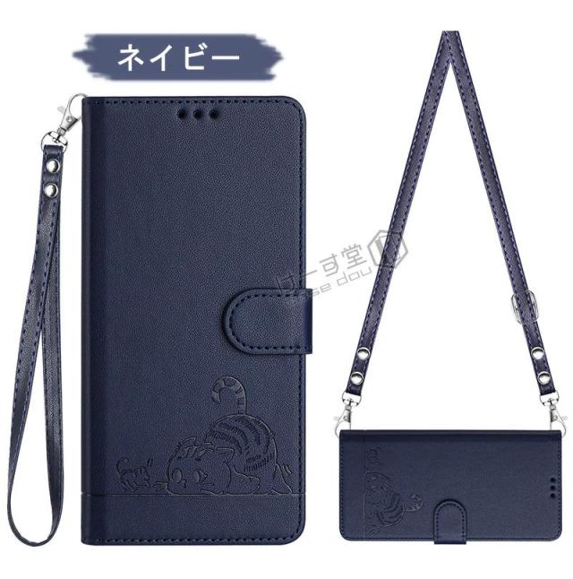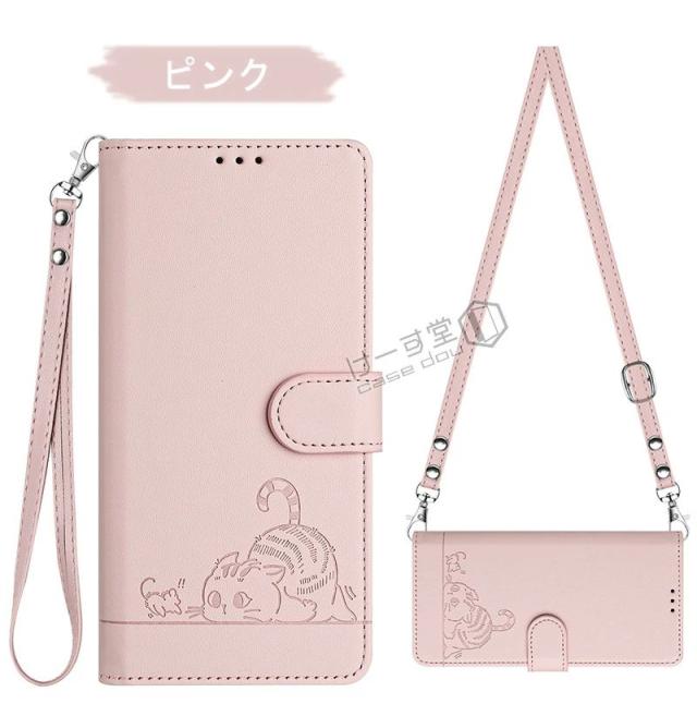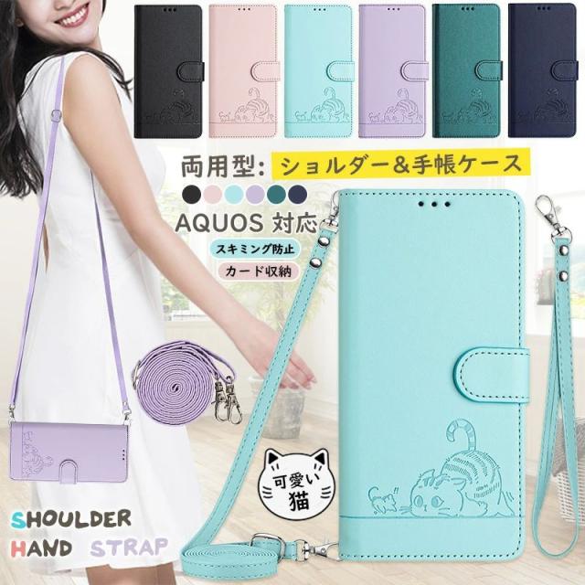 可愛い猫 AQUOS wish5 R10 ケース 手帳型 AQUOS R9 sense9 ショルダータイプ アクオス ウィッシュ4 携帯ケース AQUOS wish 4 ケース カバー スタンド カード収納 RFIDスキミング防止 型押し エンボス加工 かわいい ねこ 猫 おしゃれ ショルダーと手首ストラップ付き