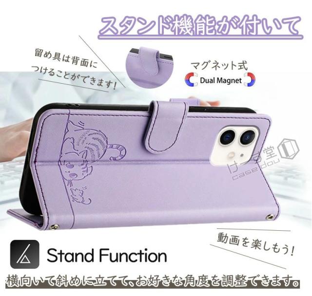可愛い猫 iPhone17 16e 16Pro ケース 手帳型 iPhone 14 ショルダータイプ iPhone15 携帯ケース iPhone 12 mini 11 pro アイフォンXR XS 7 8 SE 15 promax カバー スタンド カード収納 RFIDスキミング防止 型押し かわいい ねこ 猫 おしゃれ ショルダーと手首ストラップ付き