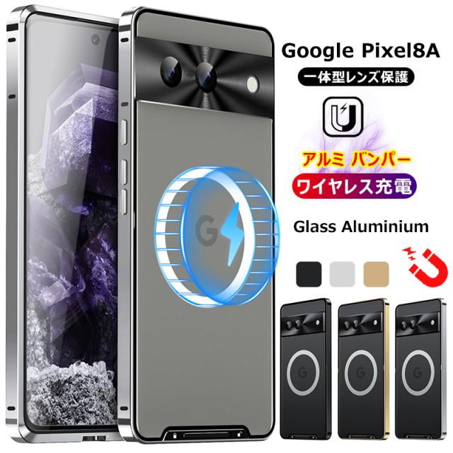 一体型レンズ保護カバー Google Pixel 8A アルミバンパーケース グーグルピクセル8A マグネット搭載 Google Pixel8A 金属ケース カメラフィルム googlepixel8a pixel8aカバー おしゃれ スマホケース 艶消し マットパネル 半透明 PC背面 アルミ合金製 ロック付き Magsafe対応