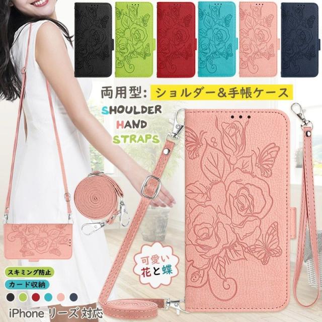 [RFID機能] iPhone17 16 pro ショルダー iPhone16e手帳ケース かわいい iPhone11pro 花と蝶 iPhone13pro iPhone12proケース iPhone13miniカバー スタンド機能 iPhone12miniケース バタフライ カード入れ きれい 蝶々 型押し エンボス加工 ショルダー・ハンド ストラップ付き