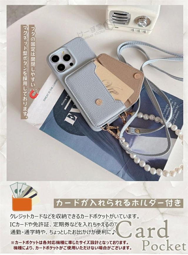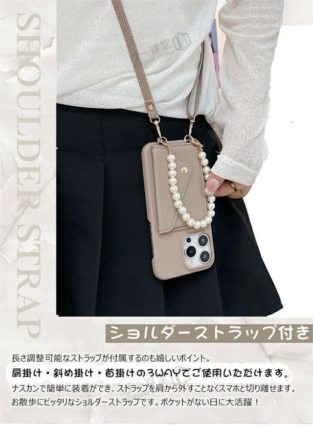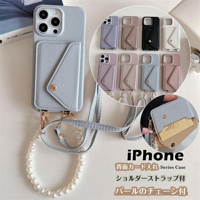 スマホショルダーケース iphone17e 17ケース 15 14pro iPhone 13 12mini 13mini 13promax 11Pro iphonese 第2世代 第3世代 ケース 背面 カード入れ くすみ ニュアンス カラー ショルダー iPhone12 iPhone13 iPhone アイフォンケース 韓国 パール チェーン ストラップ付き