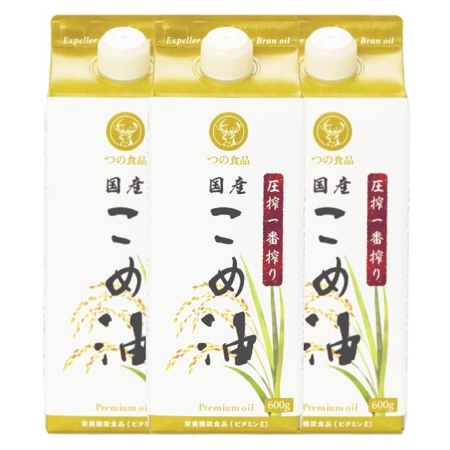 良質 まとめ買い TSUNO 米油 こめ油 圧搾 一番搾り 紙パック 600g 3本セット