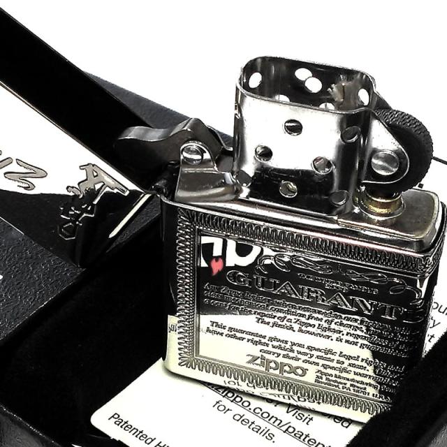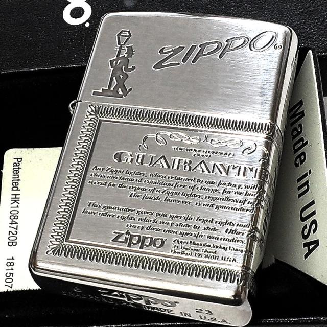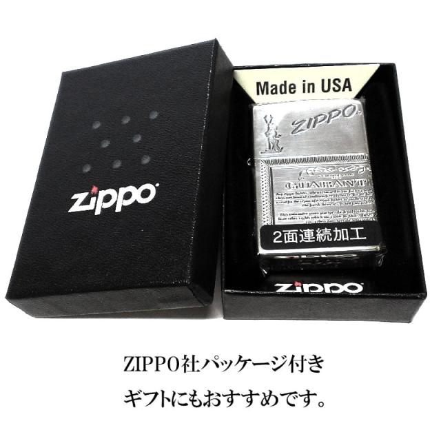 シルバー燻し仕上げのボディに、ZIPPOの永久保証書(ギャランティ)がデザインされたジッポーライターです。 本体に施された燻し仕上げにより、アンティーク感の漂う雰囲気が演出されています。