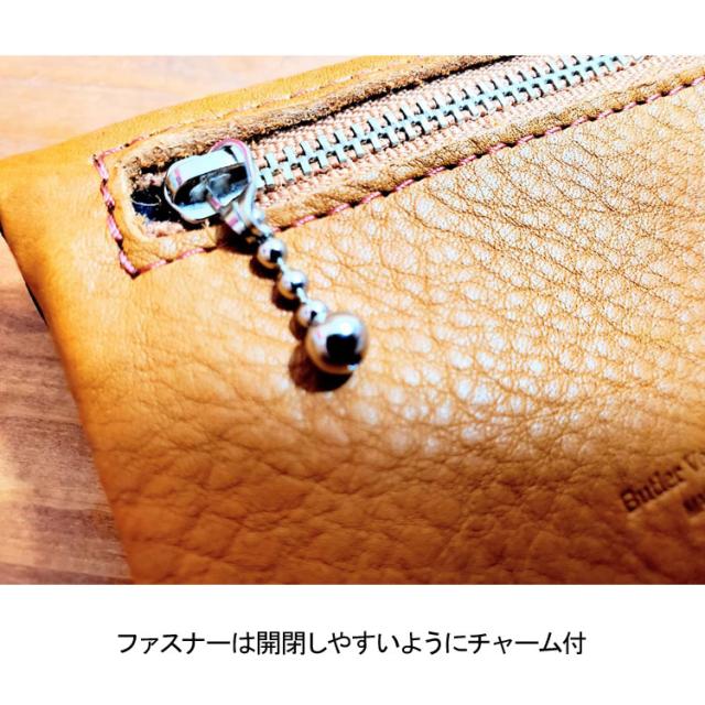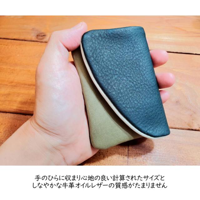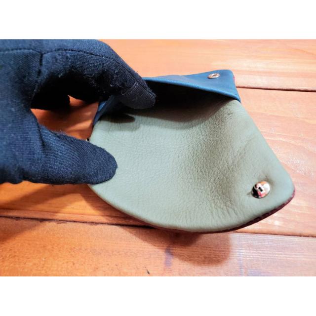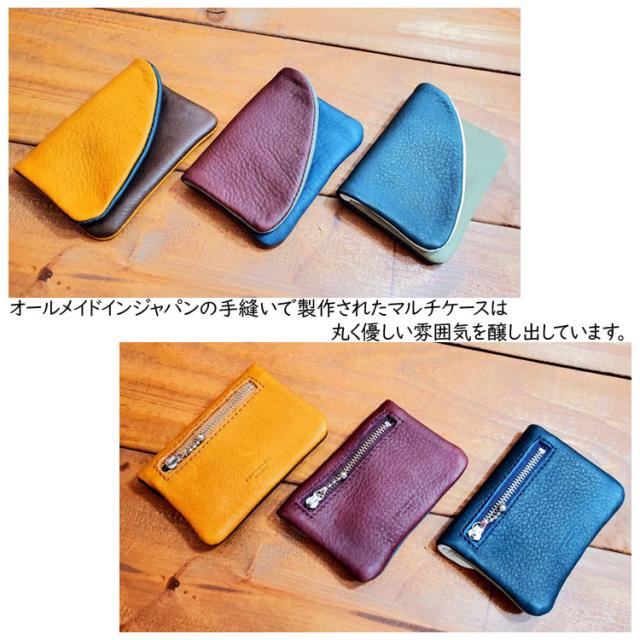 3色の牛革を組み合わせた、デザイン性の高いミニマルチポーチです。