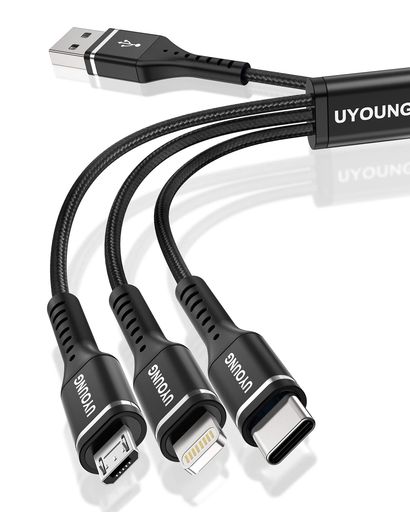 【3in1 充電ケーブル】本製品は三合一充電線、マルチヘッド充電線です。3種類の端子(ライトニングiOS・Type-C・Micro USB)を搭載しており、自宅、オフィス、車内等色々な場所で、1本だけを持つと十分。