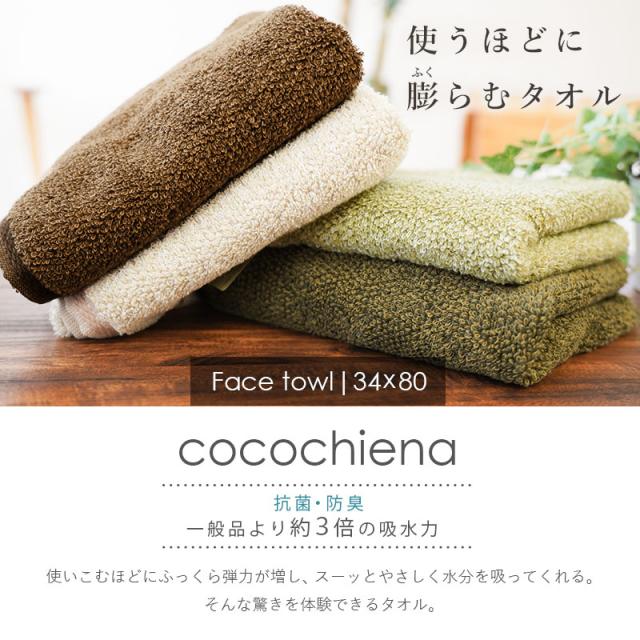 【メール便】タオル フェイスタオル 抗菌 防臭 スイッチパイル 甘撚り糸 高吸水糸使用 中厚 34×80 ココチエナ 【同梱不可】