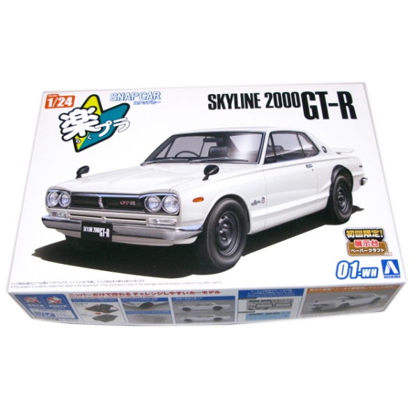 KPGC10 スカイラインHT 2000GT-R 1970 ホワイト NISSAN ニッサン スナップカー KIT 楽プラ 1/24 (01-WH) アオシマ (市)★